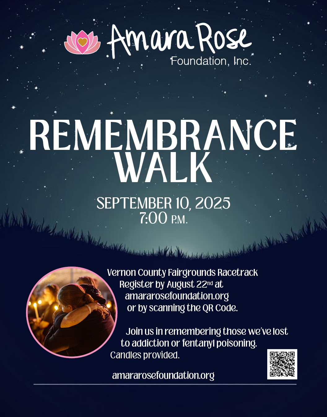Join us on the opening night of the Vernon County Fair on the racetrack! Admission to the fair is free that night, Wednesday, September 10th. Event starts at 7 PM with shirt pick-up starting at 6 PM. Join us as we honor and remember those precious lives lost to addiction and fentanyl poisoning with a program, prayer and a candlelight […]