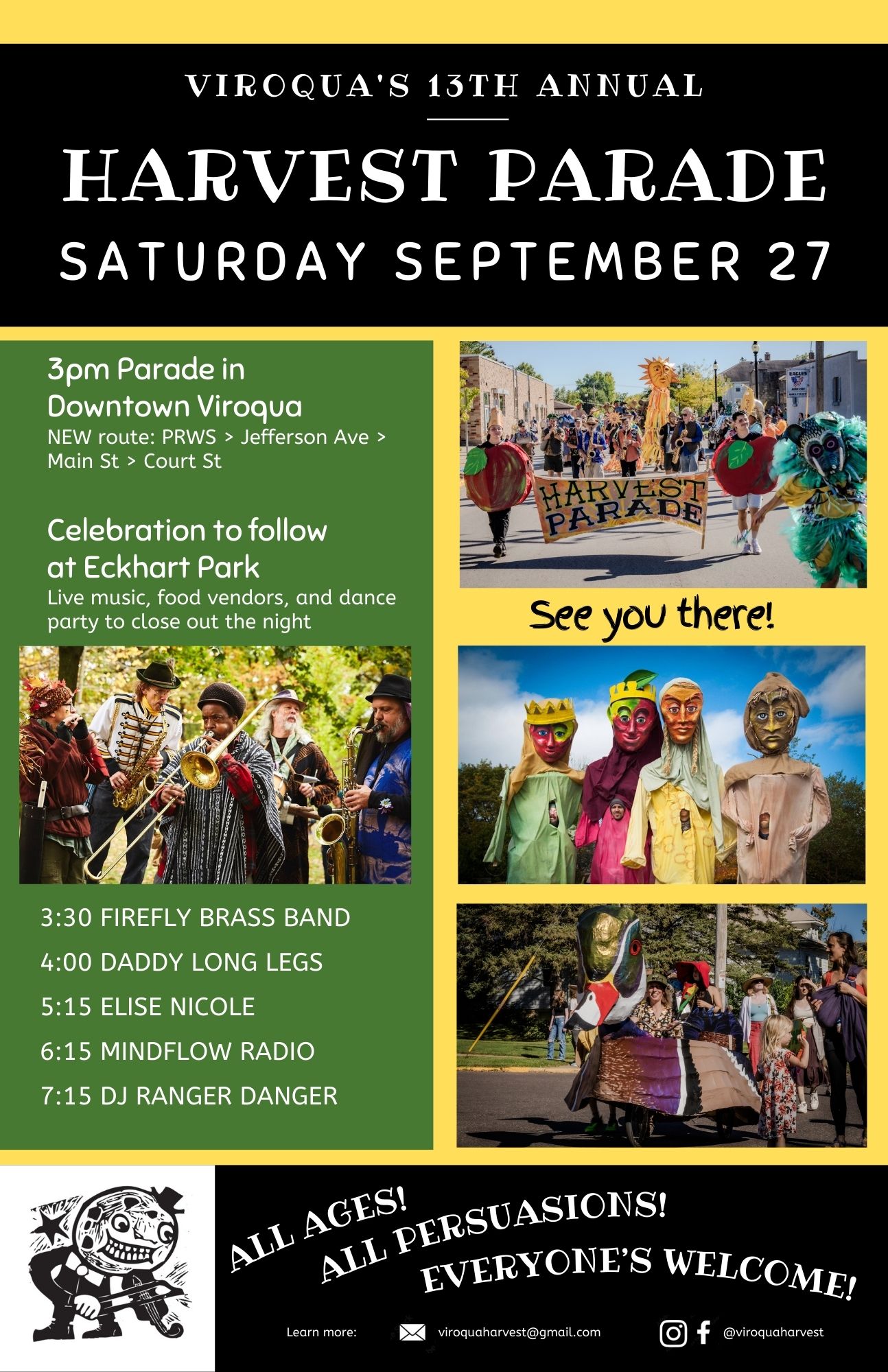 Join us for the 13th Annual Viroqua Harvest Parade in downtown Viroqua!! Featuring giant puppets, marching musicians, stilt walkers, fantastical costumes and an after-parade-party in the park. ???? SCHEDULE: 2pm ~ Lineup at Pleasant Ridge Waldorf School 3pm ~ Parade: (NEW ROUTE THIS YEAR) leave PRWS via Jefferson, heading straight to Main Street, north on Main, west on Court Street […]