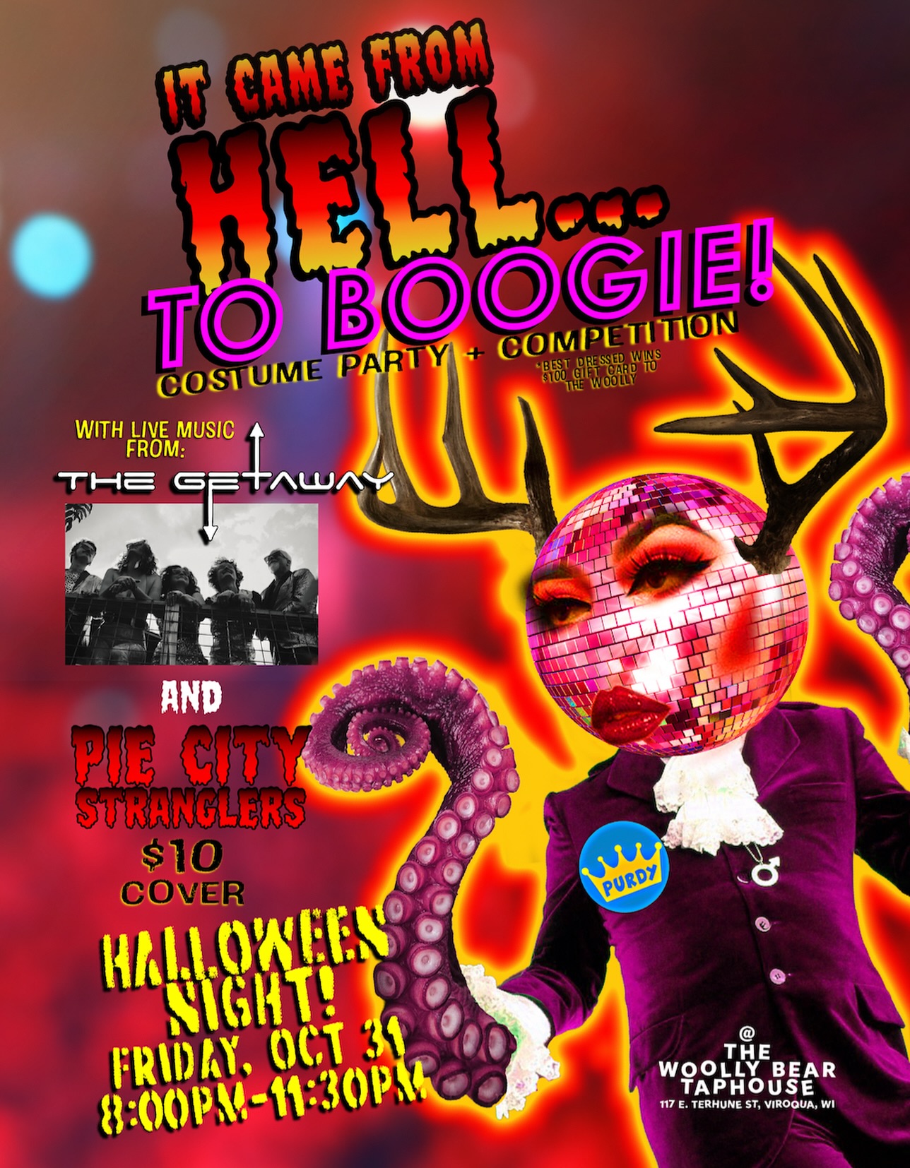 Come get dressed up and boogie with @thegetaway_band and The Pie City Stranglers and us this Halloween night in The Caterpillar Club! We’re having a costume competition where best dressed wins $100 gift card to the Woolly Bear! $10 cover for a night you’re not going to want to miss! Stay fuzzy ya’ll